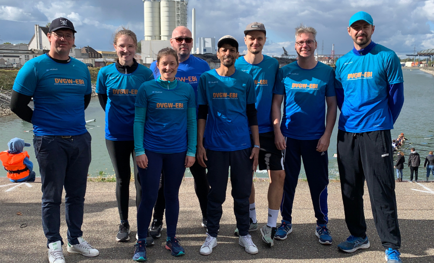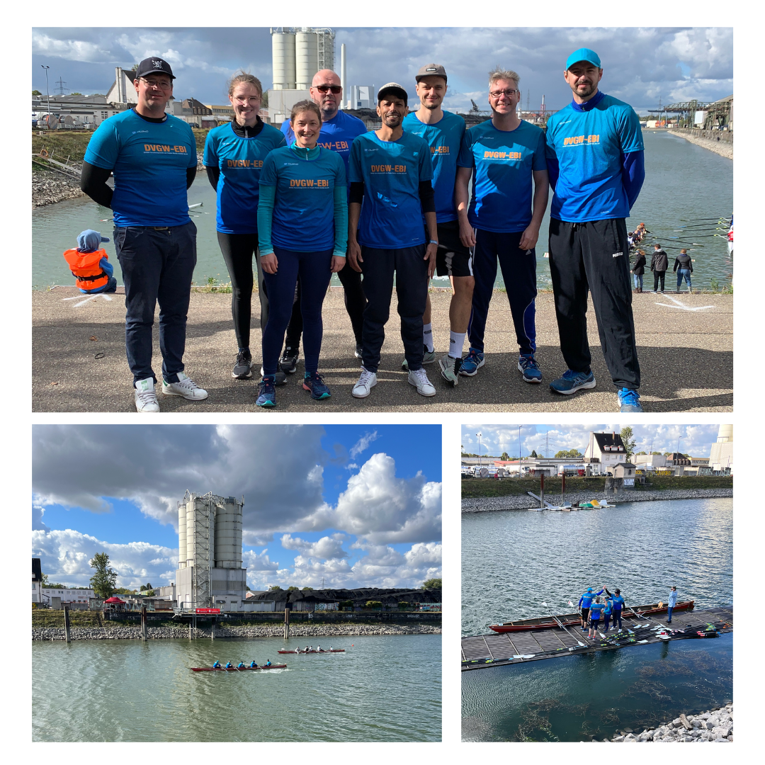 Am Sonntag fand bei strahlendem Sonnenschein und frostigen Temperaturen der 1. Karlsruher Firmencup im Rudern statt. Die DVGW-Forschungsstelle am EBI und das Engler-Bunte-Institut des KIT waren mit gleich zwei Booten unter den insgesamt 13 teilnehmenden Booten vertreten. Nach nur 5 Trainingseinheiten auf dem Wasser ging es für die 8 Ruder-Neulinge am Sonntag ins Rennen über 500 Meter im Rheinhafen. Anders als im Training hatten die Ruderer:innen mit starkem Wind und Wellen zu kämpfen - Krebse wurden trotzdem nicht gefangen.